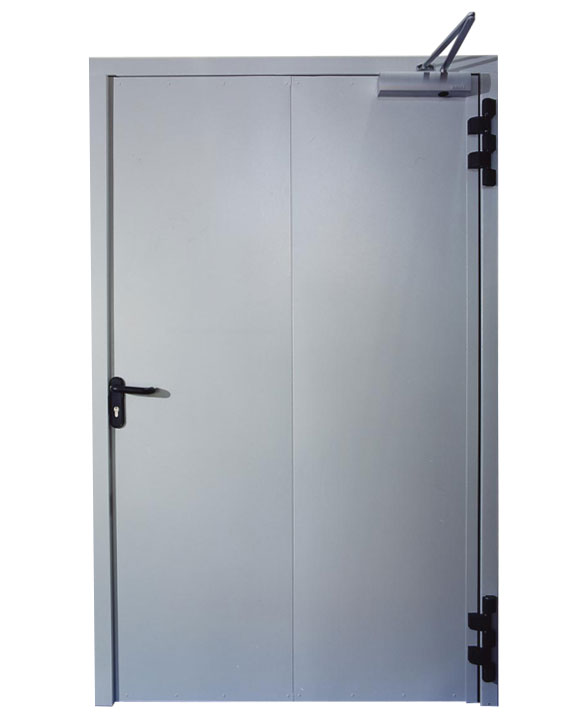 - Standard: door closer, 5-wing hinges, fire lock, pair of black handles with plate, cylinder with three keys