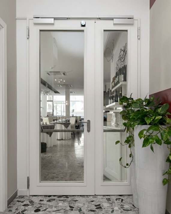 - Dotazioni di serie complete, tra cui maniglie, cilindro con chiavi, serratura antincendio e chiudiporta aereo.