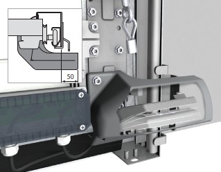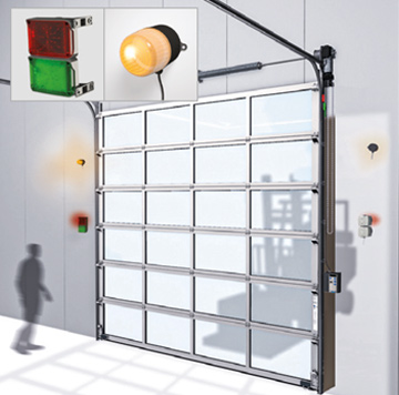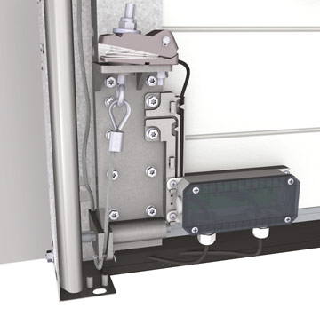 Per i portoni sezionali industriali equipaggiati con unità di controllo T100, è disponibile in opzione il dispositivo elettronico di bloccaggio EDL 100. Installato all’esterno della guida di scorrimento, una volta attivato blocca il portone tramite un perno in acciaio, impedendone il sollevamento verso l’alto.